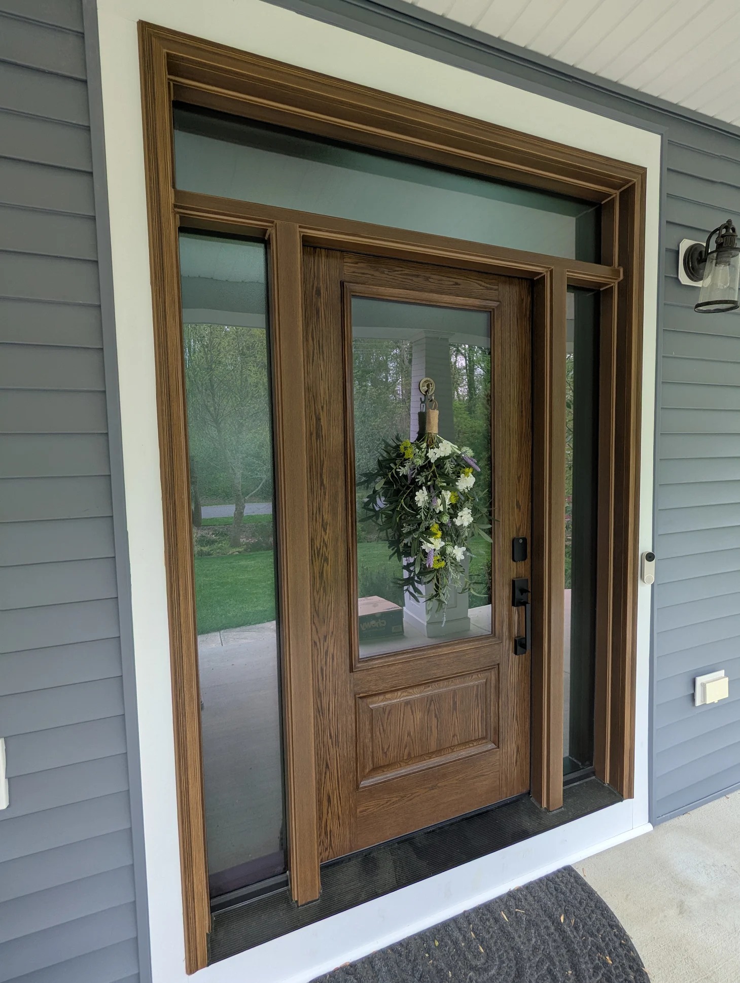 Claudia’s home now features a stunning ProVia Signet entry door in English Chestnut with Pebble privacy glass. The installation fits flawlessly, the trim blends seamlessly, and those daylight gaps? Gone. She got exactly what she wanted… beauty, performance, and a door that looks like it was always meant to be there.